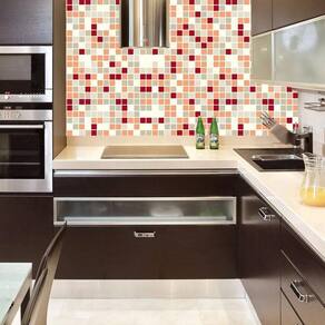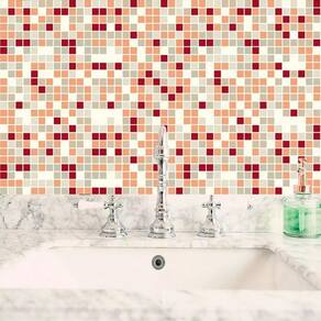 Papel de parede pastilha vermelho branco laranja autocolante
