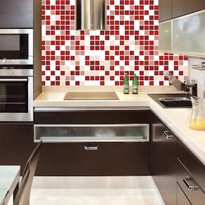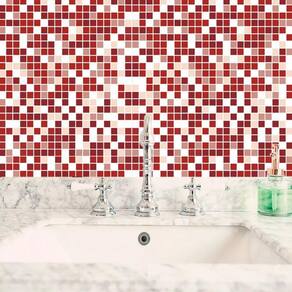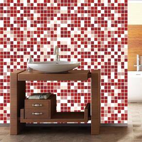 Papel de parede pastilha vermelho e branco adesivo cozinha