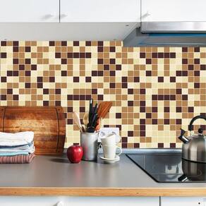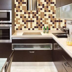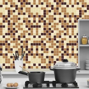 Papel de parede pastilhas bege marrom preto adesivo banheiro