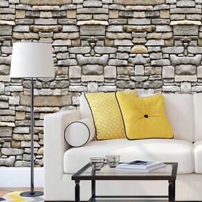 Papel de parede pedra tijolos cinza claro adesivo sala
