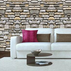Papel de parede pedra tijolos cinza claro adesivo sala