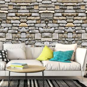 Papel de parede pedra tijolos cinza claro adesivo sala