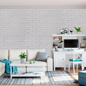 Papel De Parede Pedras Tijolos Cinza Claro Autocolante Sala