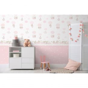 Além de opções de estampas diidas, delicadas e fofíssimas, a coleção Pippo conta com papéis de cor única, ideal para compor a decoração dos ambientes, compondo estampados e lisos em paredes laterais.