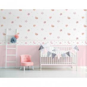 Além de opções de estampas diidas, delicadas e fofíssimas, a coleção Pippo conta com papéis de cor única, ideal para compor a decoração dos ambientes, compondo estampados e lisos em paredes laterais.