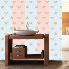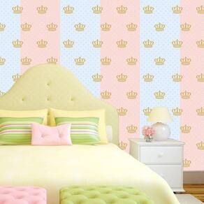 Papel De Parede Poa Rosa E Azul Com Coroa Dourado Adesivo