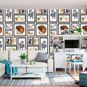 Papel De Parede Porta Retrato Gatos Adesivo Decorativo