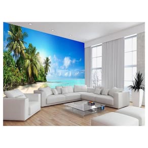 Papel De Parede Praia Mar Coqueiros Areia Céu 3,5M Npr321