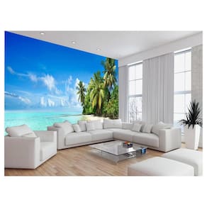 Papel De Parede Praia Mar Coqueiros Areia Céu 3,5M Npr322