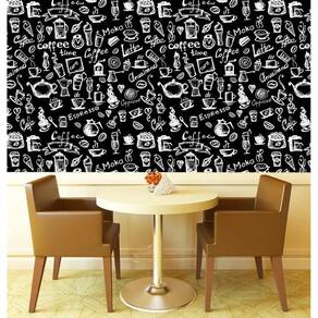 Papel de parede preto com desenhos branco café espresso chá