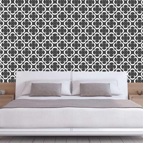 Papel de parede preto e círculos brancos adesivo sala quarto