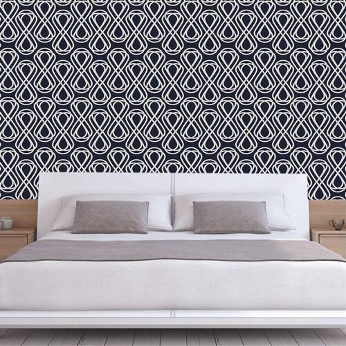 Papel de parede preto e desenho oito branco autocolante sala
