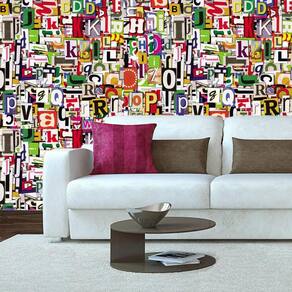 Papel de parede recorte de letras coloridas adesivo lavável