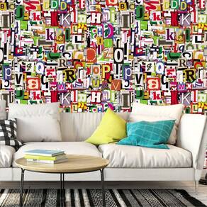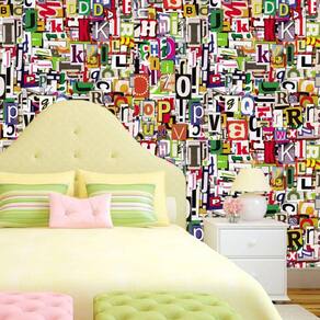Papel de parede recorte de letras coloridas adesivo lavável