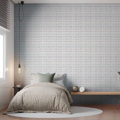 Papel de Parede Revoada Xadrez Aquarela Azul, Cinza e Vermelho 4424