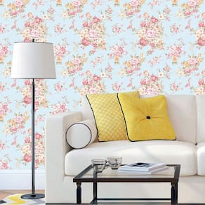 Papel De Parede Rosas Com Azul Floral Adesivo Sala Quarto