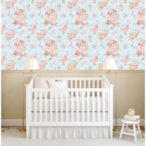Papel De Parede Rosas Com Azul Floral Adesivo Sala Quarto