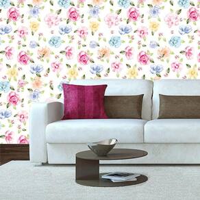 Papel De Parede Rosas E Flores Coloridas Autocolante Sala