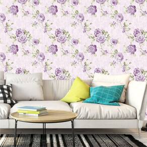 Papel De Parede Rosas Lilas Flores Autocolante Sala Quarto