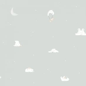 A atmosfera do quarto dos pequenos certamente iá ficar leve, calma e relaxante com esse lindo papel de parede. A Lua e os ursos es irão estar lá para que os pequenos tenham uma boa noite.