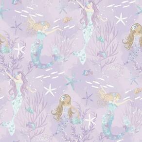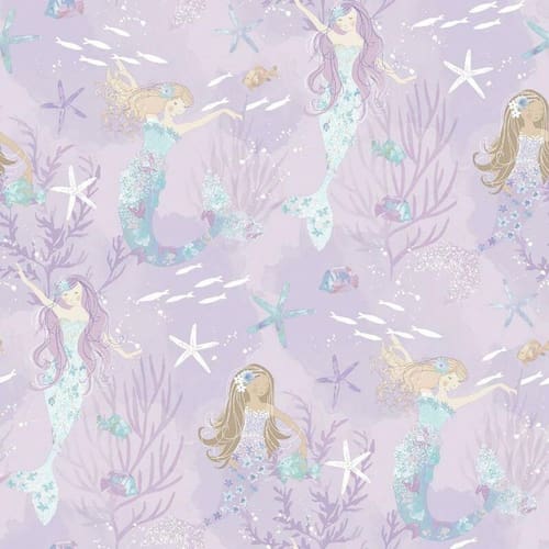 Papel De Parede Sereias G78391 Roxo E Gliter
