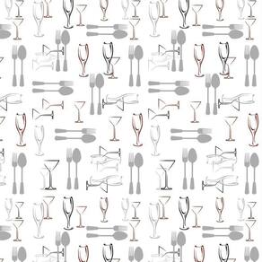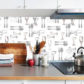 Papel de parede taça e talheres cinza autoadesivo cozinha