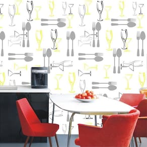 Papel de parede taças e talheres cinza autoadesivo cozinha