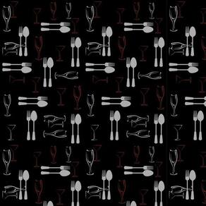 Papel de parede talheres cinza com fundo preto autocolante