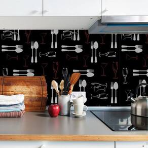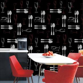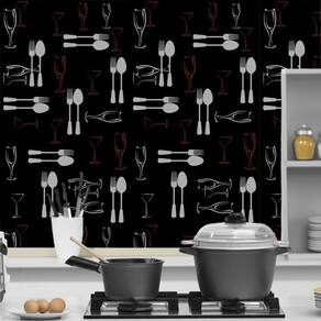 Papel De Parede Talheres Cinza Com Fundo Preto Autocolante