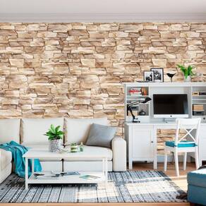 Papel De Parede Tijolo Pedra Mármore Claro Autocolante Sala