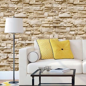 Papel De Parede Tijolos E Pedra Cor Clara Adesivo Lavavel