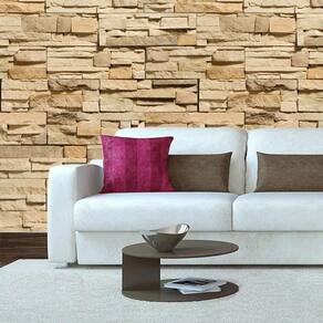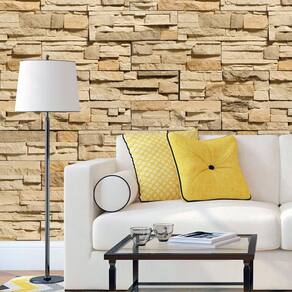 Papel De Parede Tijolos E Pedras Bege Adesivo Lavavel Sala