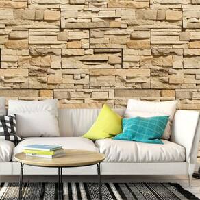Papel De Parede Tijolos E Pedras Bege Adesivo Lavavel Sala