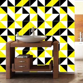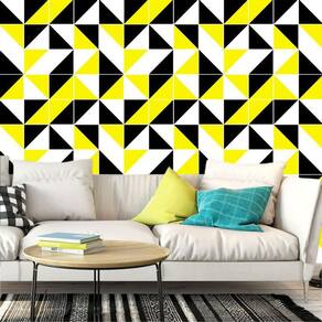 Papel de parede triângulos preto amarelo branco geométrico