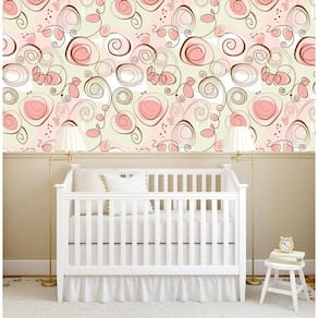 Papel De Parede Verde Claro E Rosa Circulos Autocolante
