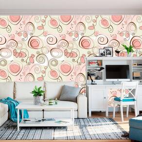 Papel De Parede Verde Claro E Rosa Circulos Autocolante