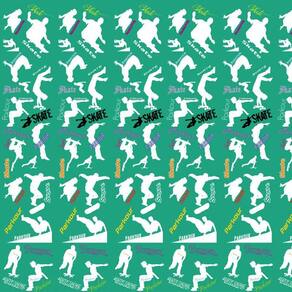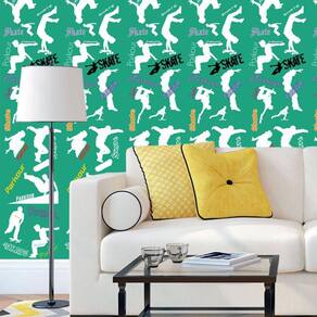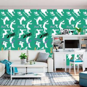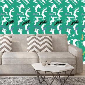 Papel De Parede Verde Com Manobras Skate Adesivo Decorativo