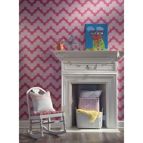 Papel De Parede Waverly Kids Airwaves Wk6954 Papel de Parede Waverly Kids Airwaves WK6954 em rosa e branco, para decorar o quarto da sua filha com muita arte e um pouco de romantismo. Note o movimento produzido pela arte gráfica em forma de chevron, moderno e elegante. Um produto da Americana York Wallcoverings.
