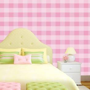 Papel de parede xadrez rosa adesivo decorativo sala quarto