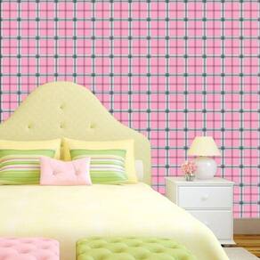 Papel de parede xadrez rosa e cinza autocolante sala quarto