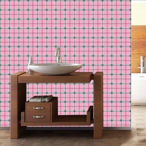 Papel de parede xadrez rosa e cinza autocolante sala quarto