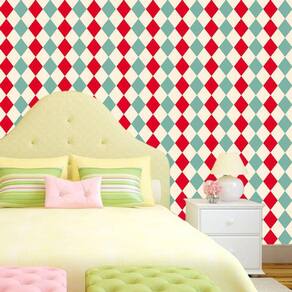 Papel de parede xadrez verde e vermelho autocolante sala