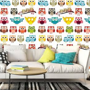 Papel De Paredes Corujinhas Coloridas Adesivo Decorativo