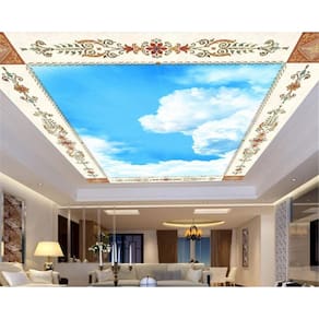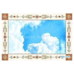 Papel De Teto Céu Azul Nuvens Moldura Impressa 3,5M Rof26