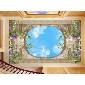 Papel De Teto Céu Azul Nuvens Moldura Impressa 3,5M Rof30