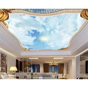 Papel De Teto Céu Azul Nuvens Moldura Impressa 3,5M Rof32