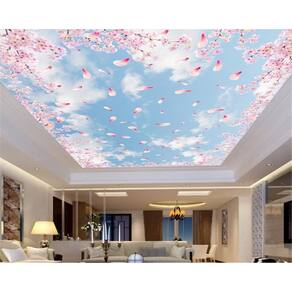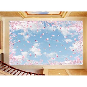 Papel De Teto Céu Azul Pétalas De Flores Rosas 3,5M Rof41