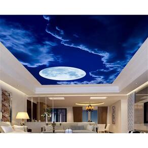 Papel De Teto Céu Noite Céu Lua Cheia Nuvens 3,5M Rof21