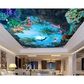 Papel De Teto Fundo Do Mar Corais Tubarões 3,5M Rof90