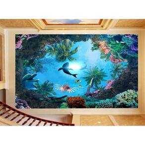 Papel De Teto Fundo Do Mar Corais Tubarões 3,5M Rof90